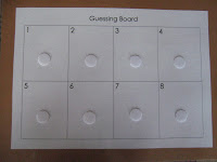 *A Guessing Board, as shown in above photo, (I used velcro dots to hold photo cards in place on the game board)
